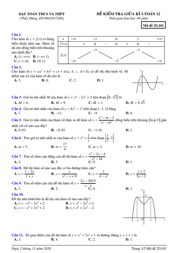 Đề giữa HK1 Toán 12