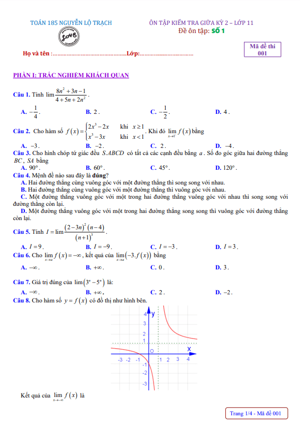 Để giúp học sinh lớp 11 chuẩn bị tốt cho kỳ thi khảo sát chất lượng môn Toán lớp 11, Sytu tổng hợp và giới thiệu tới các em tài liệu ôn tập gồm 10 đề kiểm tra giữa kỳ 2 Toán lớp 11, với đáp án và lời giải chi tiết đi kèm.