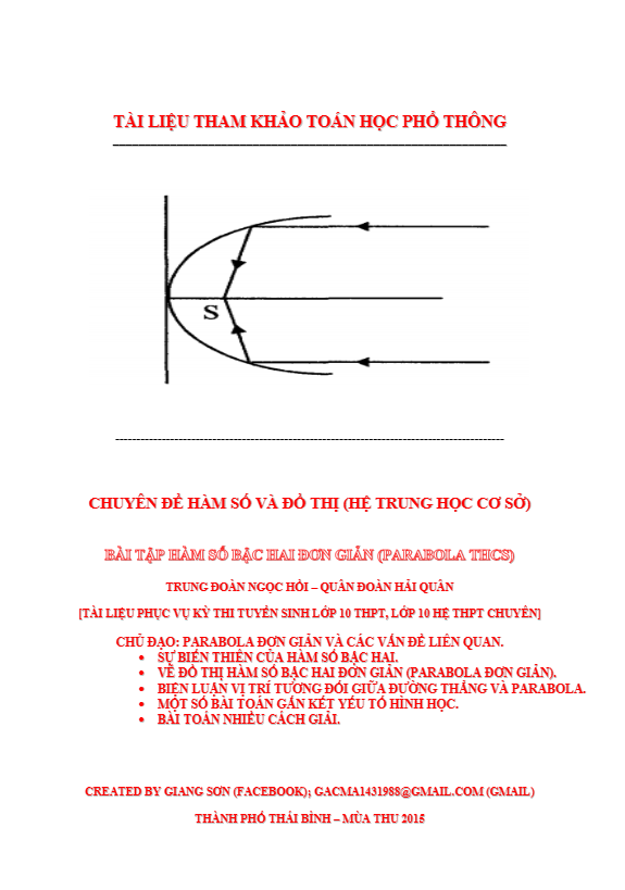 Tài liệu không chỉ dừng lại ở mức độ cơ bản mà còn mở rộng kiến thức, khuyến khích sự sáng tạo và đột phá trong các vấn đề toán học và ứng dụng chúng trong các môn khoa học tự nhiên. Mong rằng độc giả sẽ thấy hứng thú và thú vị khi nghiên cứu về đồ thị parabol và các vấn đề liên quan trong tài liệu này.
