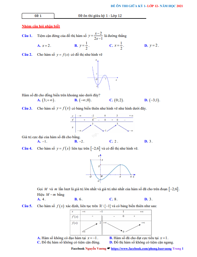 Đề giữa HK1 Toán 12