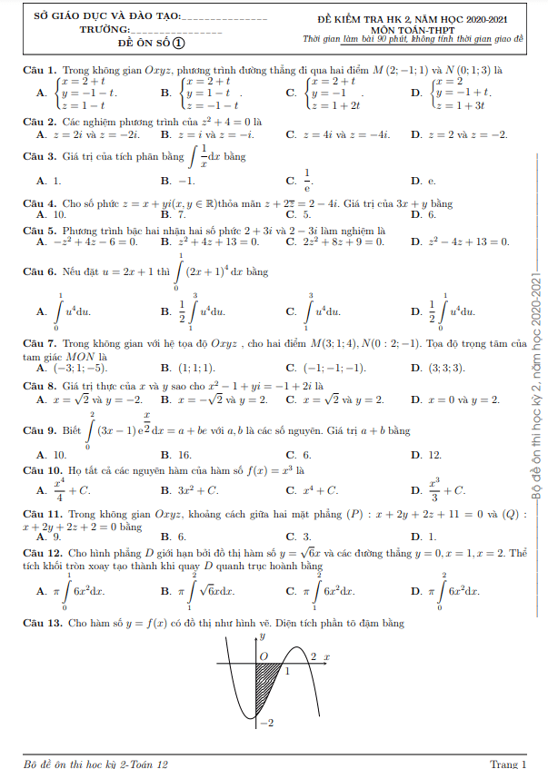 Để giúp học sinh lớp 12 chuẩn bị cho kỳ thi cuối học kì 2 môn Toán, chúng tôi xin giới thiệu tài liệu ôn tập gồm 60 trang, bao gồm 15 đề kiểm tra. Đây là tuyển tập các đề thi dành cho học sinh mức độ yếu – trung bình, giúp họ ôn luyện hiệu quả và tự tin hơn khi bước vào kỳ thi quan trọng.