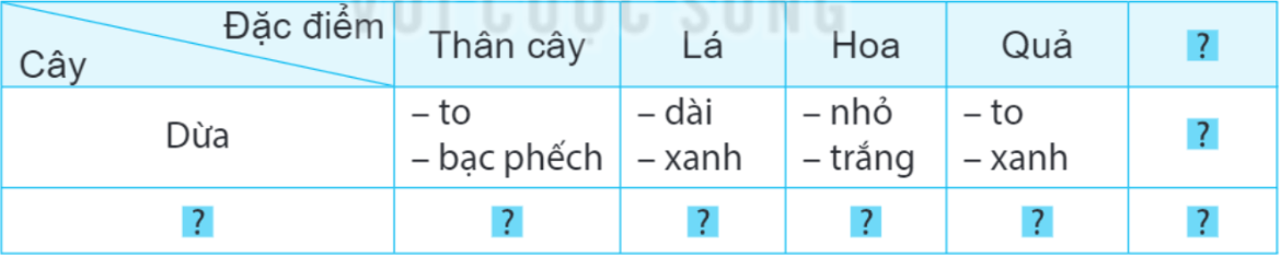 – Những từ ngữ có thể dùng để tả các bộ phận của cây: