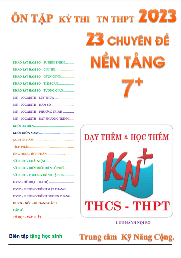 23 chuyên đề nền tảng 7+ ôn tập kỳ thi TN THPT 2023 môn Toán