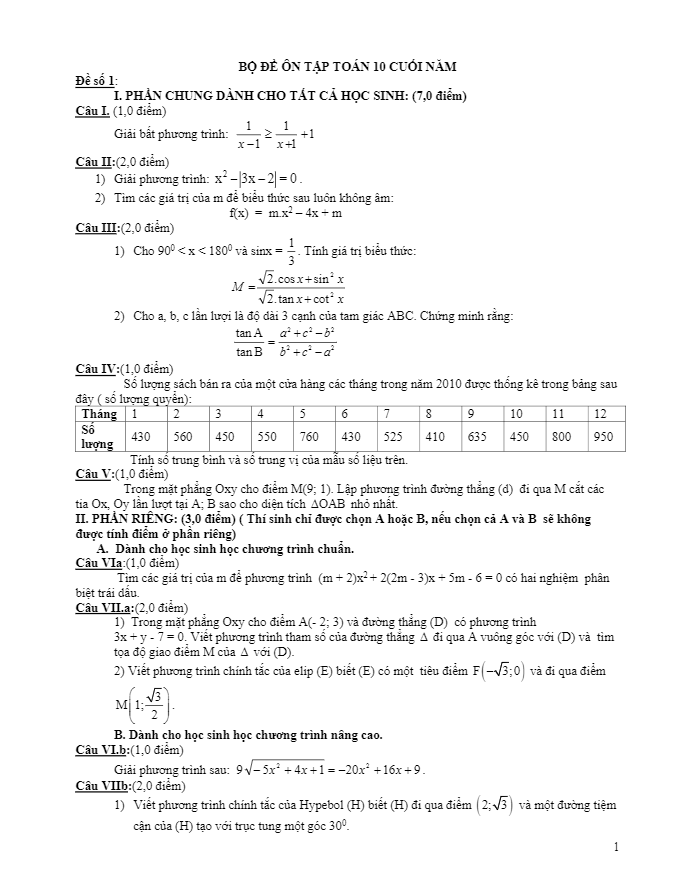 Đề HK2 Toán 10