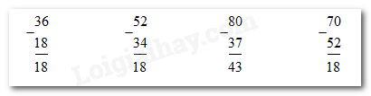 Hướng dẫn trả lời Bài 1, 2, 3, 4, 5 – Bài 23: Phép trừ (có nhớ) số có hai chữ số cho số có hai chữ số (tiết 2) trang 86 Vở bài tập toán 2 – Kết nối tri thức với cuộc sống. Đặt tính rồi tính. 36 – 18 52 – 34 80 – 37 70 – 52 Trên bến xe có 40 ô tô. Lúc sau có 16 ô tô rời bến. Hỏi trong bến còn lại bao nhiêu ô tô?…