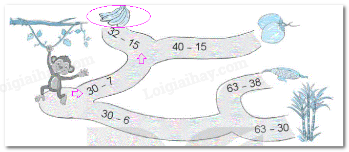 – Tính nhẩm kết quả các phép trừ trên mỗi ngã rẽ, lựa chọn con đường ghi phép tính có kết quả nhỏ hơn.