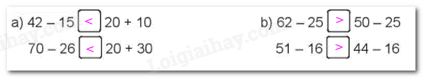 Đặt tính rồi tính (hoặc tính nhẩm) kết quả các phép tính rồi điền dấu vào ô trống cho thích hợp.