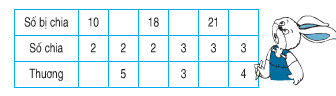 Cột thứ năm: 21 : 3 = 7, điền 7 vào ô trống.