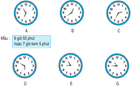 + Đồng hồ E chỉ 8 giờ 55 phút hoặc 9 giờ kém 5 phút.