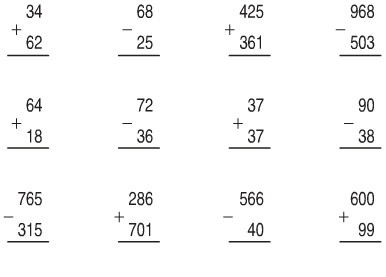 80 – 70 = 50 + 40 = 700 – 400 =