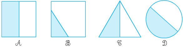Bài 2: Hình nào có ({1 over 2}) số ô vuông được tô màu ?