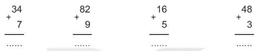 – Thực hiện đặt tính rồi tính (hoặc tính nhẩm) để tìm kết quả phép cộng ghi trên mỗi bao gạo.