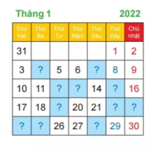 Câuhỏi: Quan sát tờ lịch tháng 1