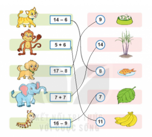 Bài 1 trang 55 Toán 2 Kết nối tri thức: Tính rồi tìm thức ăn cho mỗi con vật