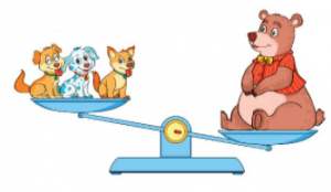 Giải:  A: Con gấu nặng hơn 3 con chó