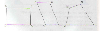 Bài 1: Hãy nêu tên các cặp cạnh đối diện trong: hình chữ nhật ABCD, hình bình hành EGHK, hình tứ giác MNPQ
