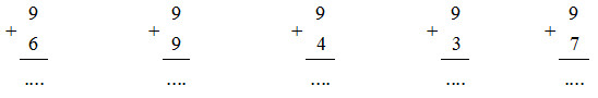 9 + 2 = … 9 + 4 = … 9 + 5 = …