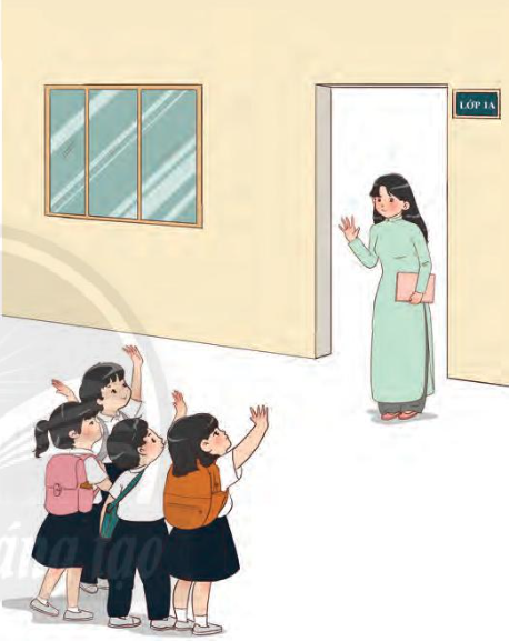 Các bạn nhỏ đang chào tạm biệt cô giáo.
