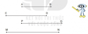 b) Hai đoạn thẳng dài bằng nhau là CD và PQ