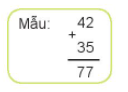 Bài 2 trang 13 Toán 2 tập 1 Kết nối tri thức: Đặt tính rồi tính tổng, biết các số hạng là 42 và 35
