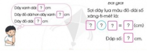 Câu hỏi: Sợi dây lụa màu xanh dài 35cm, sợi dây lụa màu đỏ dài hơn sợi dây lụa màu xanh 20cm. Hỏi sợi dây lụa màu đỏ dài bao nhiêu xăng-ti-mét?