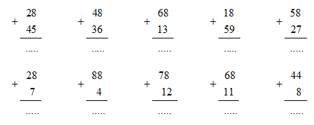 (eqalign{& 8 + 5…..8 + 4 cr & 8 + 9…..9 + 8 cr} )           (eqalign{& 8 + 5…..8 + 6 cr & 18 + 9…..19 + 8 cr} )
