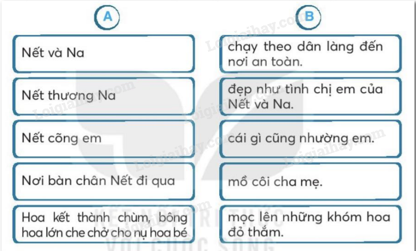 Dựa vào bài đọc, nối từ ngữ ở cột A với từ ngữ ở cột B.