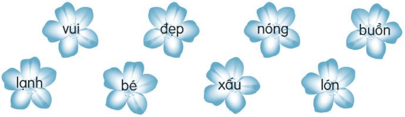 Em đọc và nối các cặp từ trái nghĩa để hoàn thành bài tập.