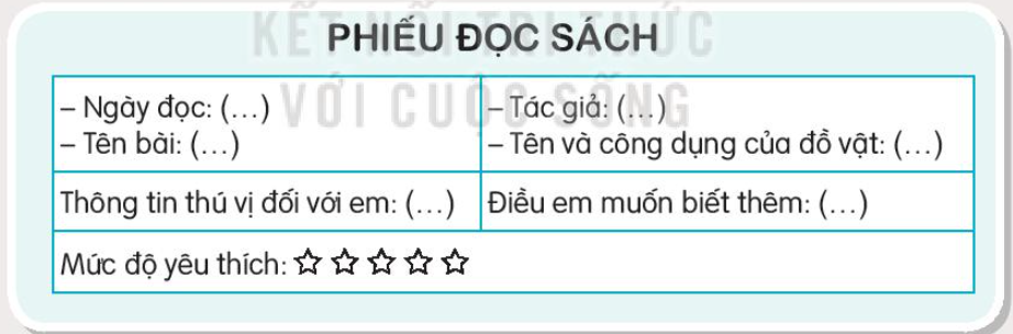 Đọc bài văn, bài thơ về đồ vật thông minh giúp con người trong công việc và viết phiếu đọc sách theo mẫu.