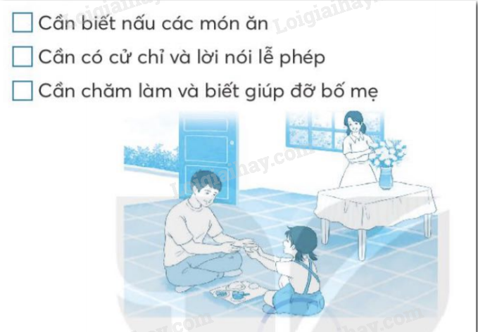 Trong bài đọc, khi chơi cùng bố, Hường đã được bố dạy những nết ngoan nào? (đánh dấu vào ô trống trước đáp án đúng)