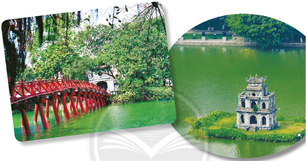 – Bức ảnh 2: Em thấy Tháp Rùa nằm giữa mặt hồ.