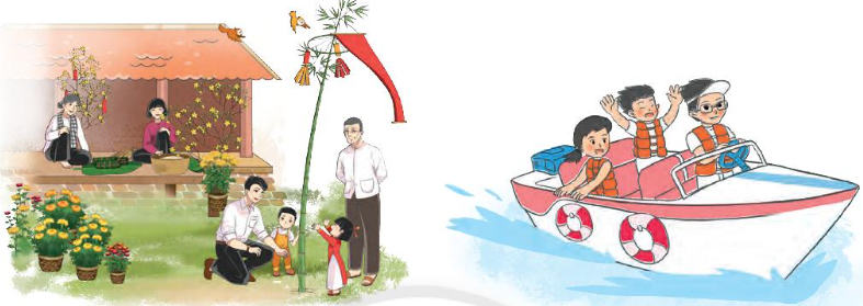 – Tranh 2: Các bạn nhỏ ra biển chơi trên cano