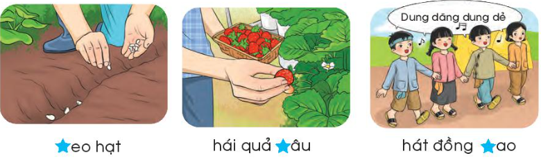 – Tìm ngoài bài đọc từ ngữ chứa tiếng có vần au, ao, ua
