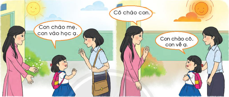 – với cô giáo khi em đến lớp.