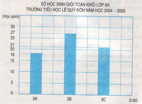 c) Trong khối lớp Ba: Lớp 3B có nhiều học sinh giỏi toán nhất, lớp 3A có ít học sinh giỏi toán nhất.