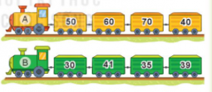 b) Tính hiệu của số lớn nhất và số bé nhất trong các số ở đoàn tàu B
