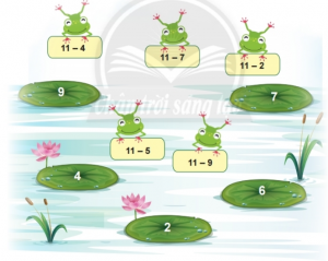 Bài 3 trang 61 SGK Toán 2 chân trời sáng tạo: Tính để biết mỗi chú ếch sẽ nhảy vào chiếc lá nào