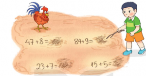 Câu hỏi: Chú gà bới đất làm mất kết quả của các phép tính mà Việt vừa viết. Hãy tìm lại kết quả giúp bạn Việt nhé