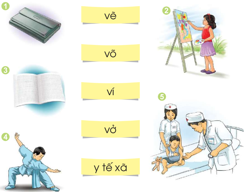 Em quan sát hình và đọc các từ để hoàn thành bài tập.