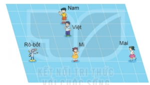 2 Nhóm đứng thẳng hàng là : Nhóm Nam, Việt, Mi và nhóm, Rô-bốt, Mi, Mai