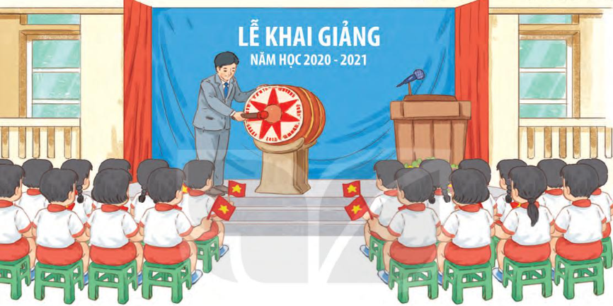 Quan sát tranh lễ khai giảng năm học