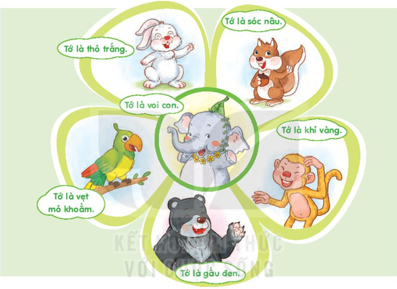 a. Những bạn đến mừng sinh nhật voi con là: thỏ trắng, gấu đen, sóc nâu, khỉ vàng và vẹt mũi khoằm.