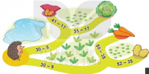 Bài 5 trang 91 Toán 2 Kết nối tri thức: Tại mỗi ngã rẽ, bạn nhím sẽ đi theo con đường ghi phép tính có kết quả lớn hơn. Bạn nhím sẽ đến chỗ món ăn nào?