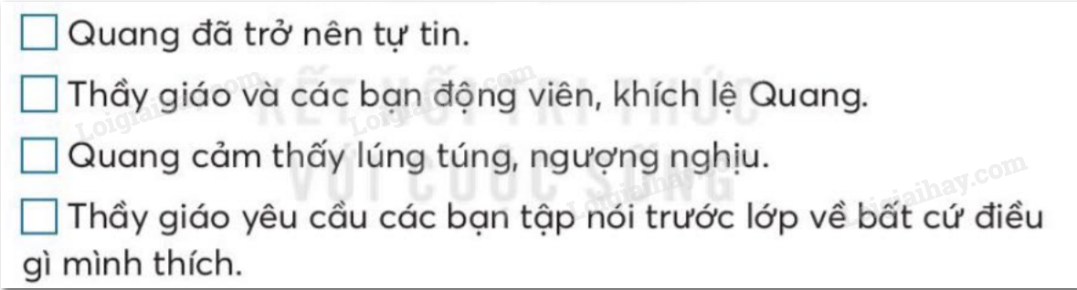 Bài 6: Một giờ học VBT Tiếng Việt 2 tập 1 Kết nối tri thức: Theo em, điều gì khiến Quang trở nên tự tin? (đánh dấu vào ô trống trước những đáp án đúng)