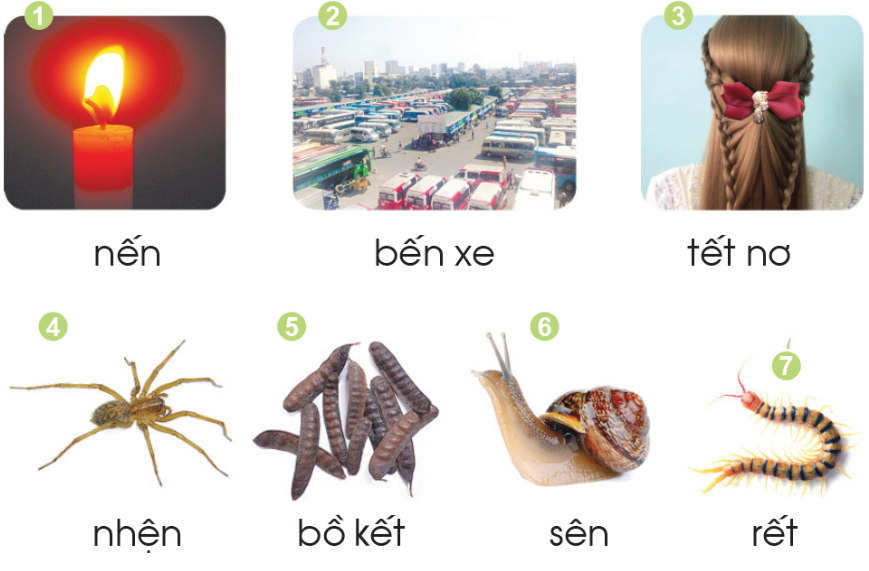 Tiếng có vần ên là: nến, bến, nhện, sên