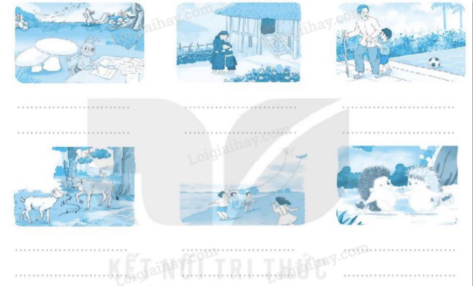 Em quan sát tranh và viết tiếp các câu kể tương ứng với mỗi tranh.