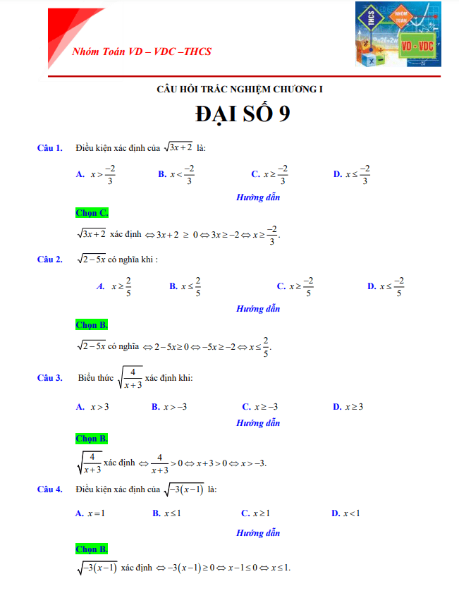 Tài liệu này bao gồm 506 trang, được biên soạn bởi quý thầy, cô giáo Nhóm Toán VD – VDC THCS, với nhiều bài tập trắc nghiệm Đại số 9 có đáp án và lời giải chi tiết.
