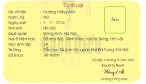 Viết bản tự thuật của em theo mẫu trên.