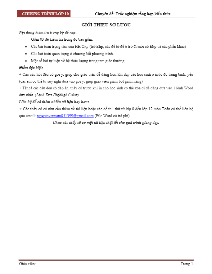Với các nội dung phong phú và đa dạng, bộ đề này sẽ giúp học sinh lớp 10 tự tin ôn tập và chuẩn bị cho kỳ thi học kì 2 môn Toán một cách hiệu quả. Mong rằng bộ đề sẽ giúp học sinh nắm vững kiến thức và rèn luyện kỹ năng giải các dạng bài tập phổ biến trong chương trình học. Chúc các bạn thành công!