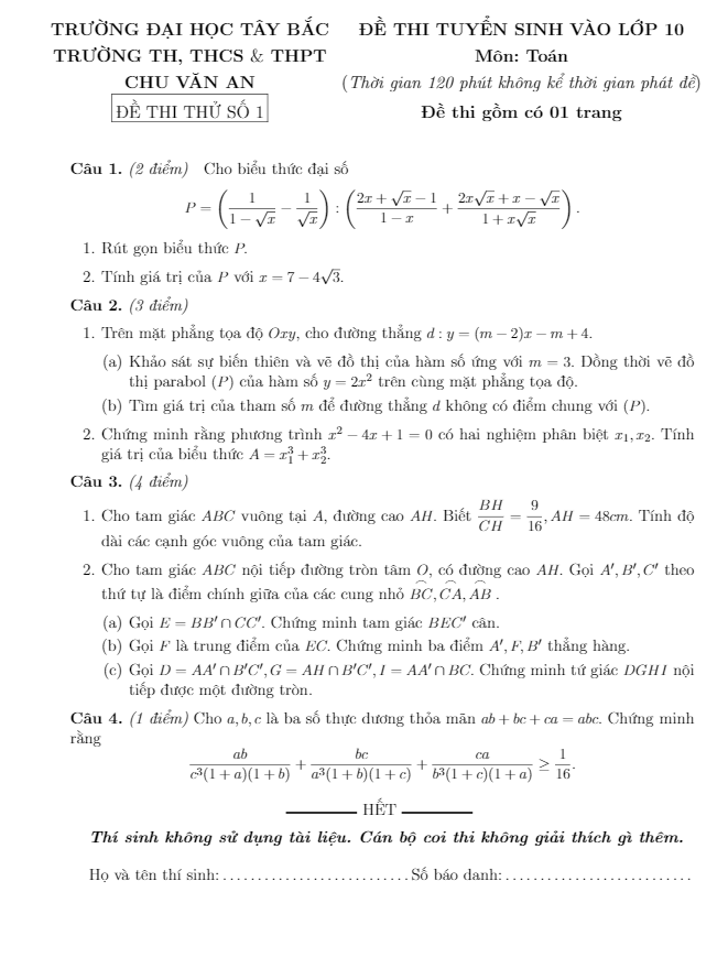 Đề thi vào lớp 10